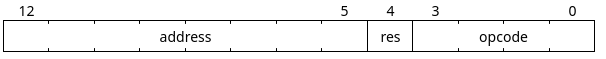 The opcode field in the 13-bit instruction word is only 4-bits wide, so there is not a large opcode space, luckily. There are actually slightly more than 16 instructions, with the additional ones "hacked on" by interpreting specific combinations of the address and residual fields differently. These come next in the instruction word. A single bit that selects residual addressing if set and an 8-bit address. Annoyingly, the LVDC documentation marks the residual bit as part of the address, showing it as a 9th bit on the address ("A9"). This is where I will break from convention and continue to refer to this as the "residual bit", for the sake of my own sanity, as calling it "A9" is misleading and difficult to work with.