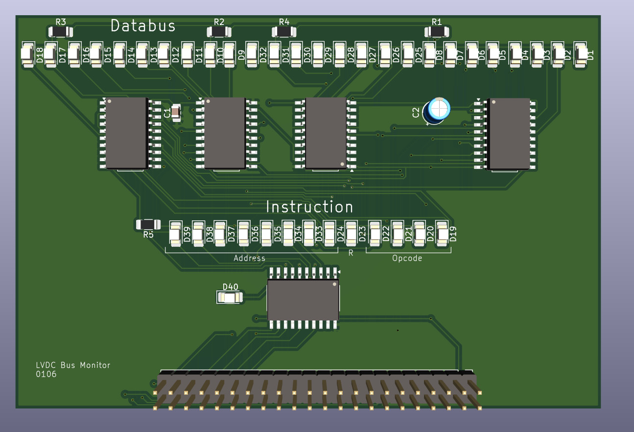 Not a lot of information about the physical construction of the LVDC survives. It is actually a bit unclear if it contained integrated circuit dies with many transistors or just discrete transistors wired together on the macro level and then encased in the same plastic packages. The components used for the logic modules were all IBM proprietary with little surviving documentation. Replicating something unknown is obviously not possible unless you stumble across the correct answers by accident, but building a computer capable of executing the same bytecode should be possible. But making it cycle-accurate would require more information still, which was also not easy to come by. And, well, at the time, the idea had also formed in my head to build a discrete logic computer using all of the things I learned when designing integrated circuits, trying to see if applying the same strategies on the macro level yields noticable improvements. So, these ideas were combined.